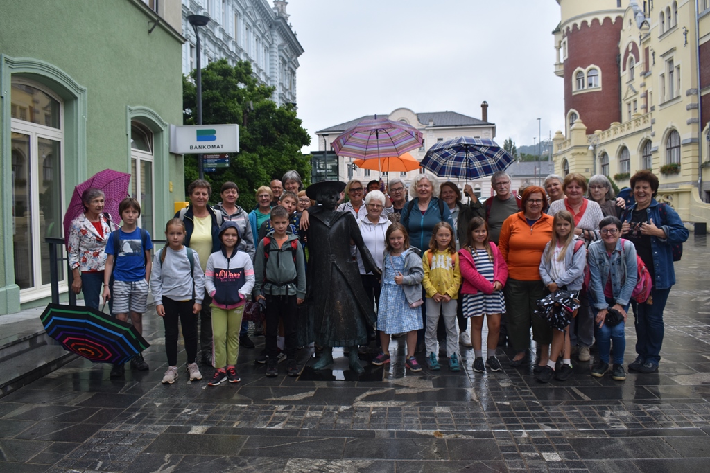 V malo turobnem jutru smo se s člani in članicami študijskega krožka Medgeneracijska odkrivanja srednjeveških mest z vlakom in nadomestnim avtobusom zapeljali proti Šentjurju, mestecu, ki ga mnogi poznajo po Ipavčevi hiši, muzejskih zbirki Rifnik in njegovih zakladov.