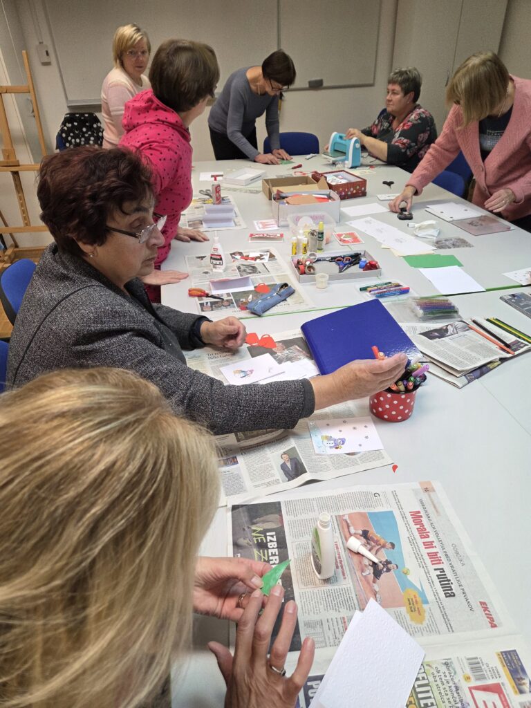 Škatla z narejenimi voščilnicami se je že zelo napolnila.